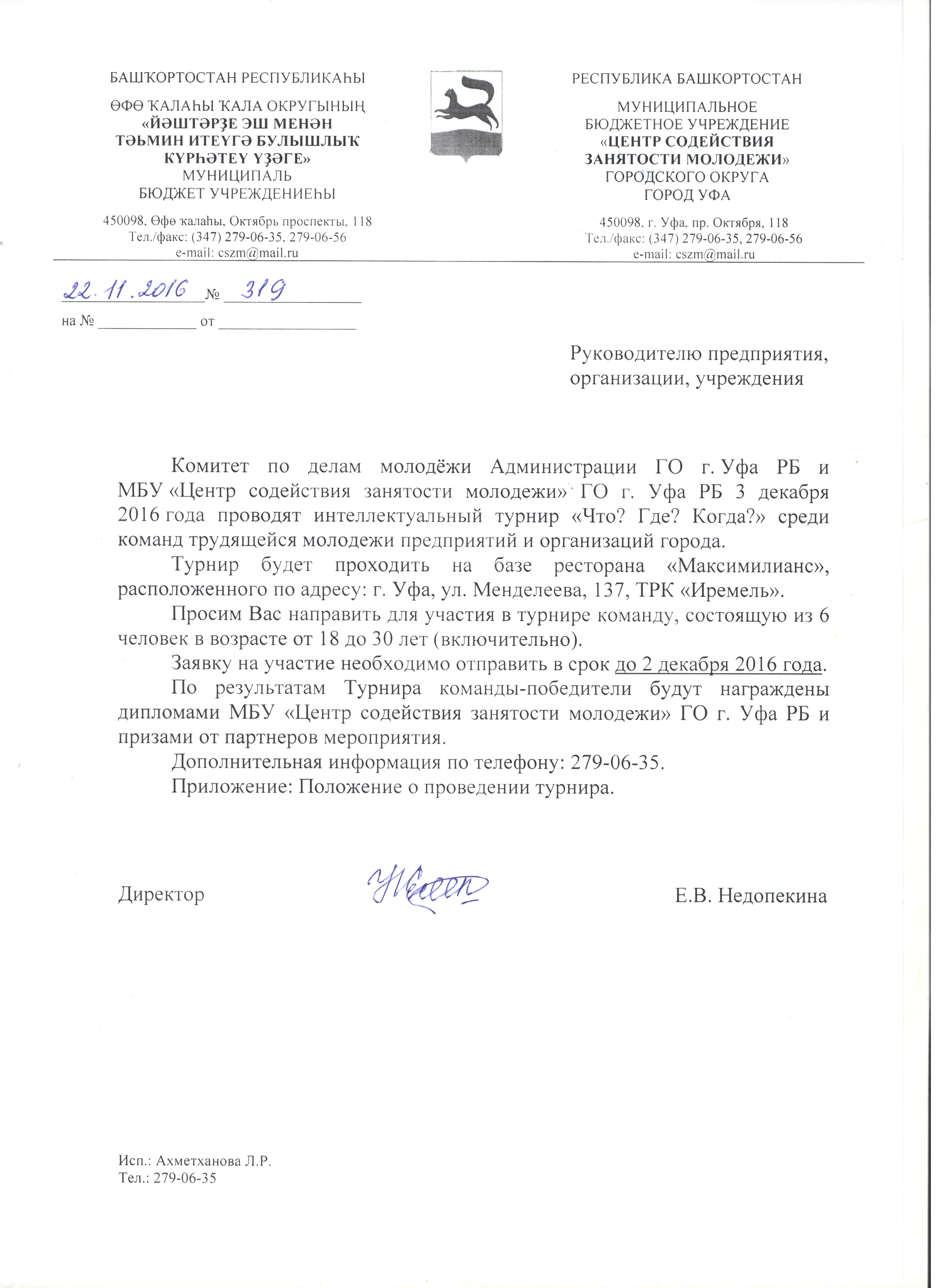 Справки по телефону: 279-06-35 (отдел по работе с трудящейся молодежью МБУ «ЦСЗМ» г. Уфы).